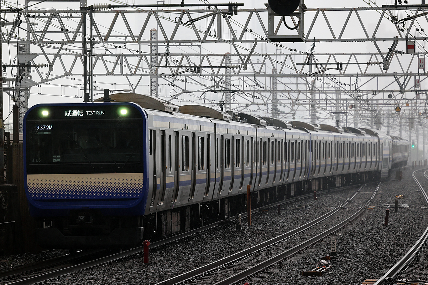 買い物ついでに1094レを市川で狙ってみようと通過10分前に到着すると3番線に「試運転」がやってきました。