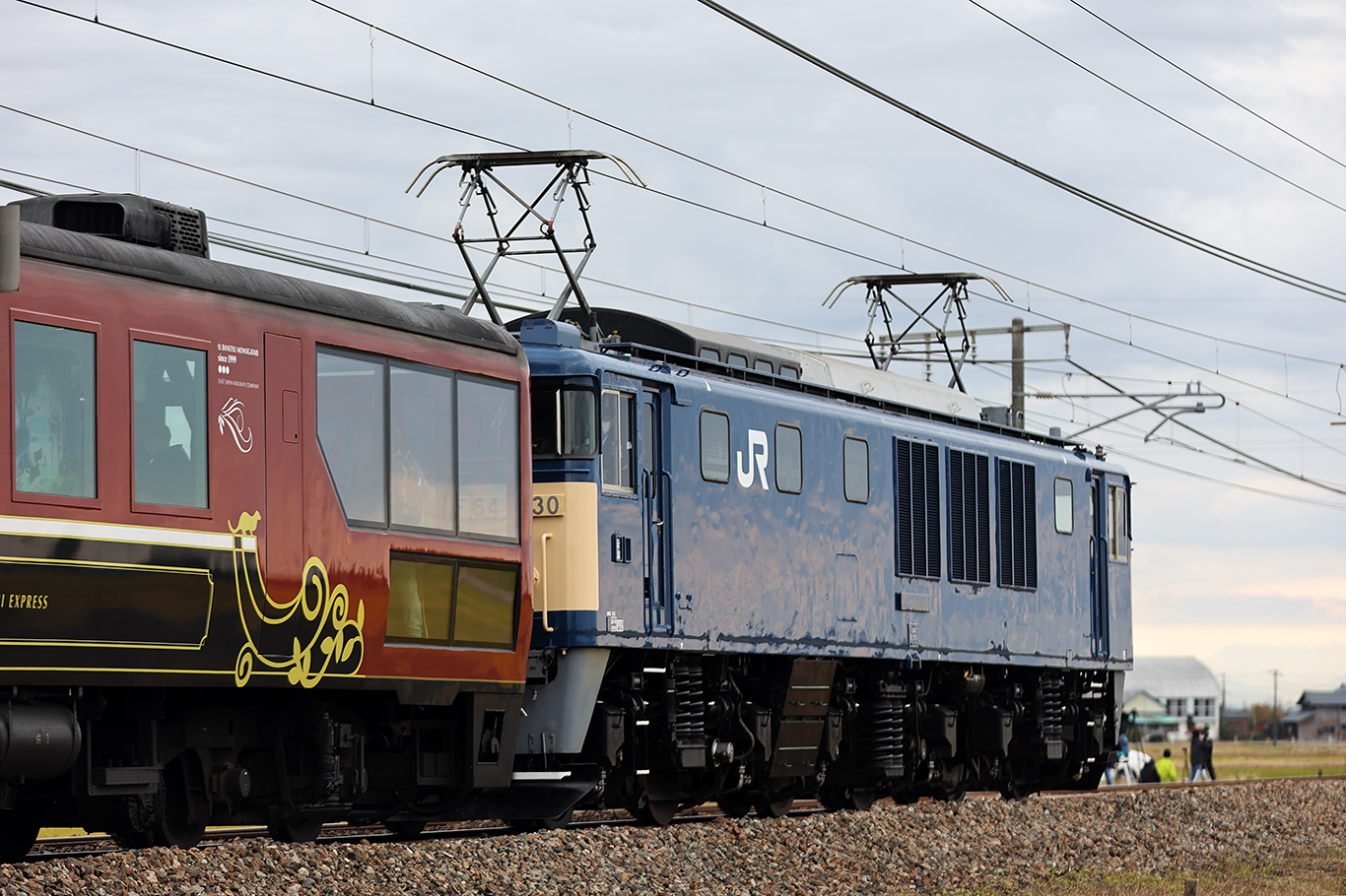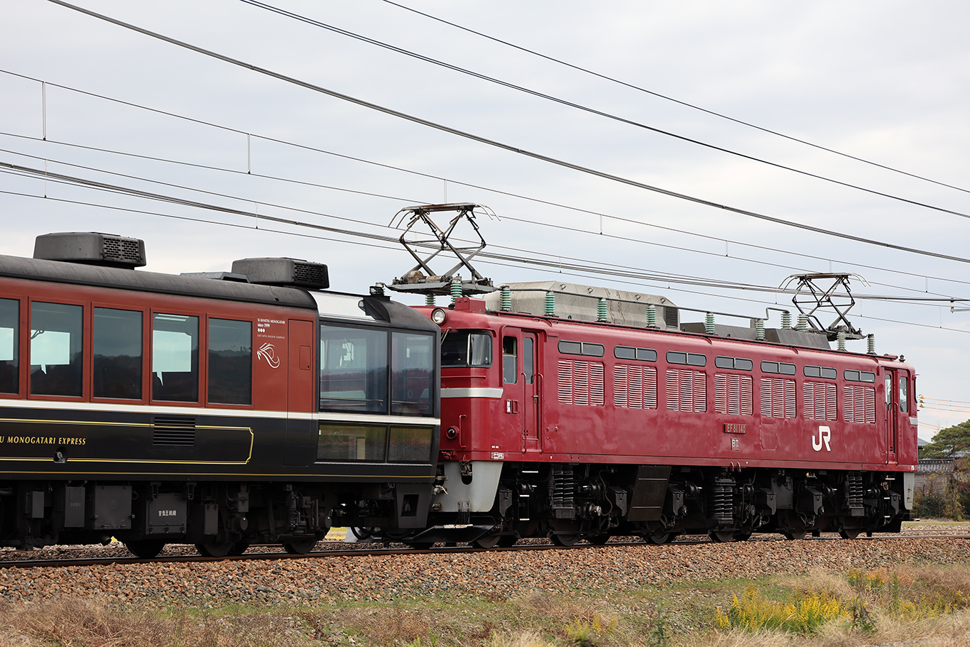 50分程で戻ってくるので下り線側に移動します。移動していると上り線をEF510のカモレが通過していきます。少し待ては良かったかな