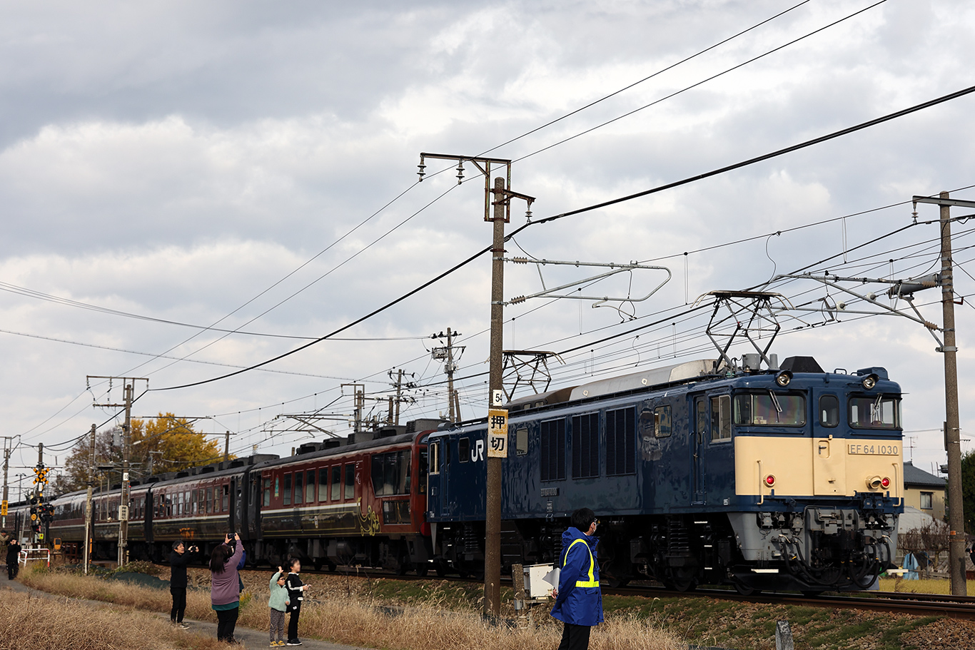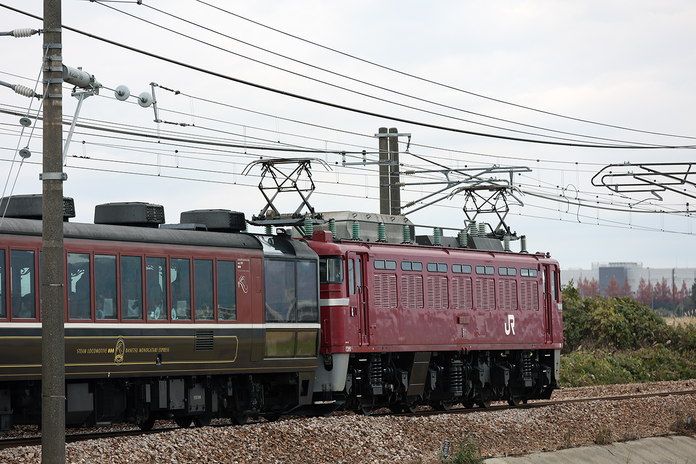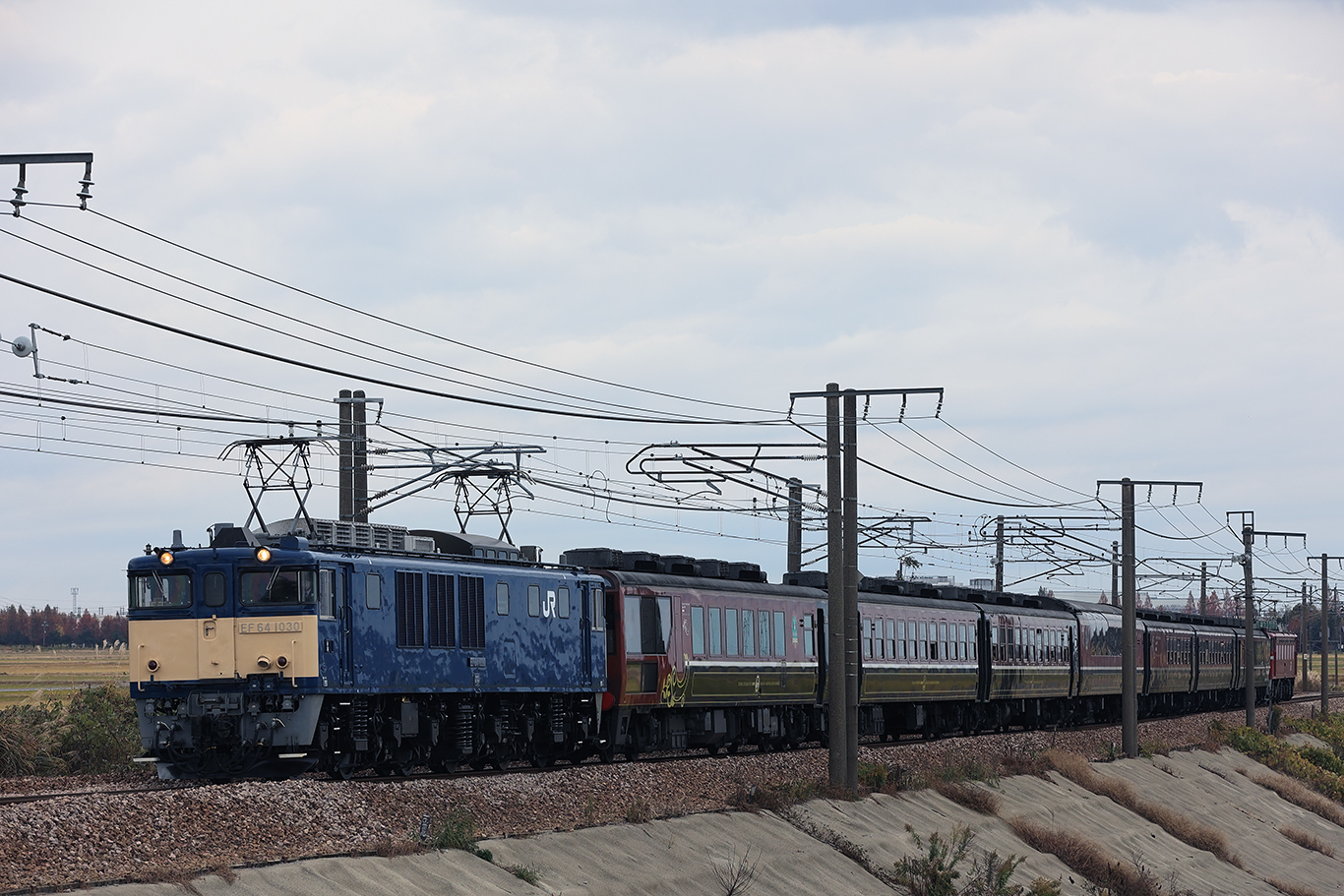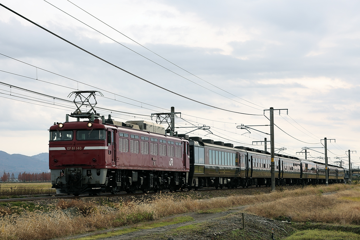 EF81-140が牽引してやって来ましたが、直前に今度は薄日がさしてきて急いで露出調整しての撮影になりました。