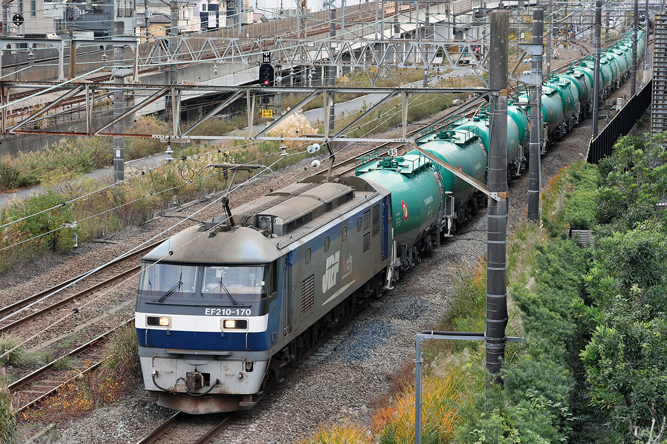 ダイヤを見ると根岸からのタンカーが来るので反対側に回るとEF210-170がやって来ました。