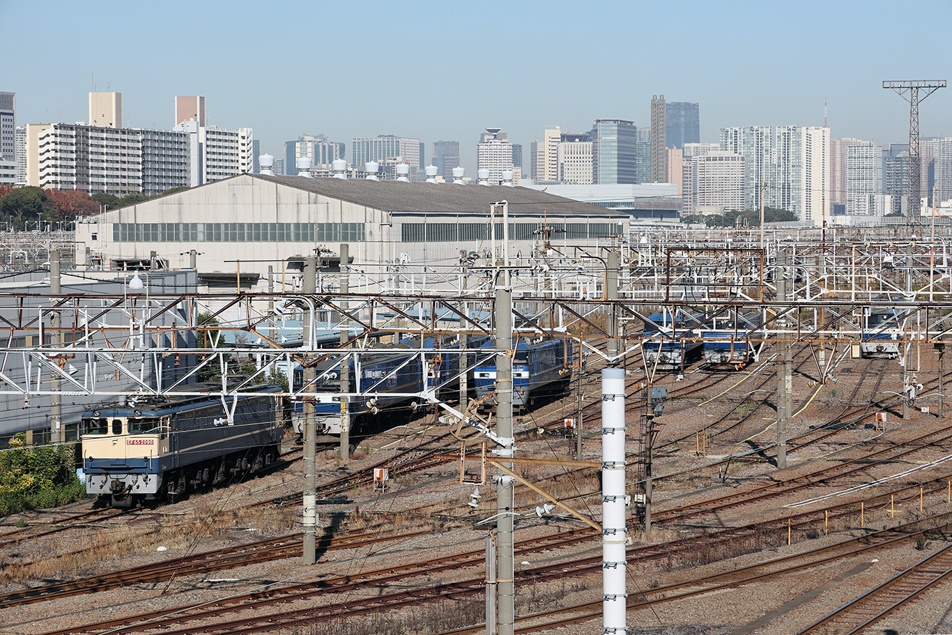 前日、熊谷タ配給では空コキだったので(当然なのですが)積載も撮りたいな~と思っていたら75レもPF代走との事なので、東タなら羽田でルフトのジャンボと掛け持ちが出来るということで大井競馬場から歩いて行くと10人位がスタンバイしています。
