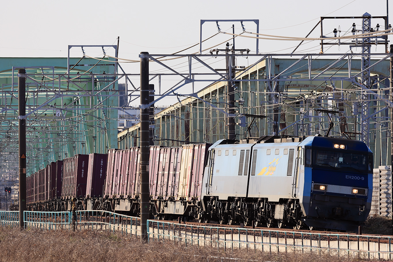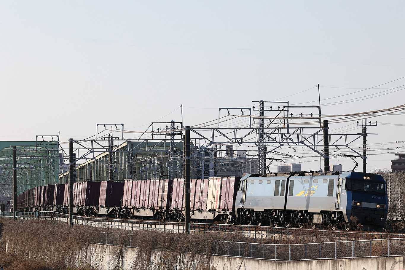 カーブなので編成全てが入らないのが残念です。そろそろ配給なのですが、宇都宮出発時点では単機だったようです。越谷で分割併合がある事もあるのでコキが付くことを期待していたのですが・・・