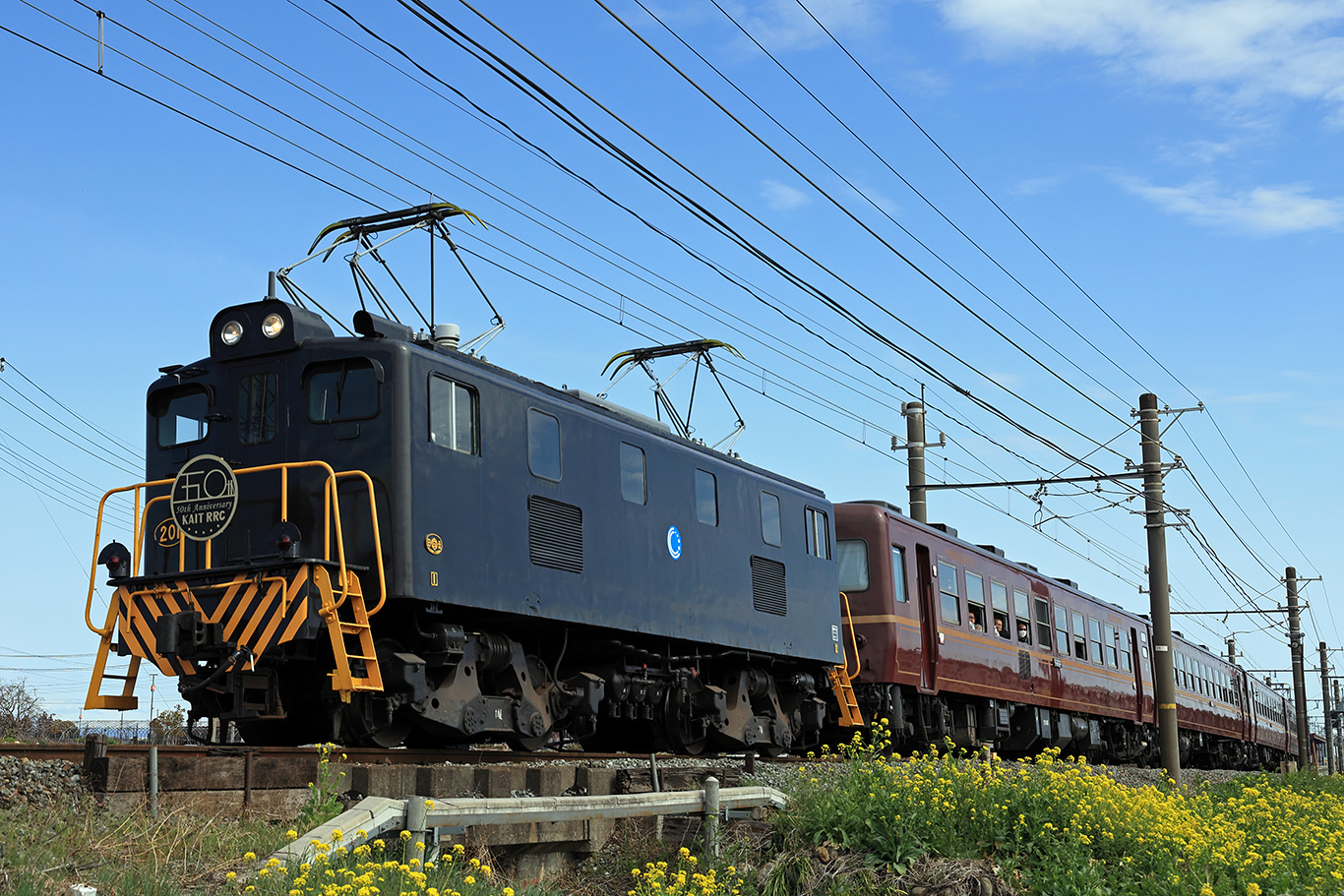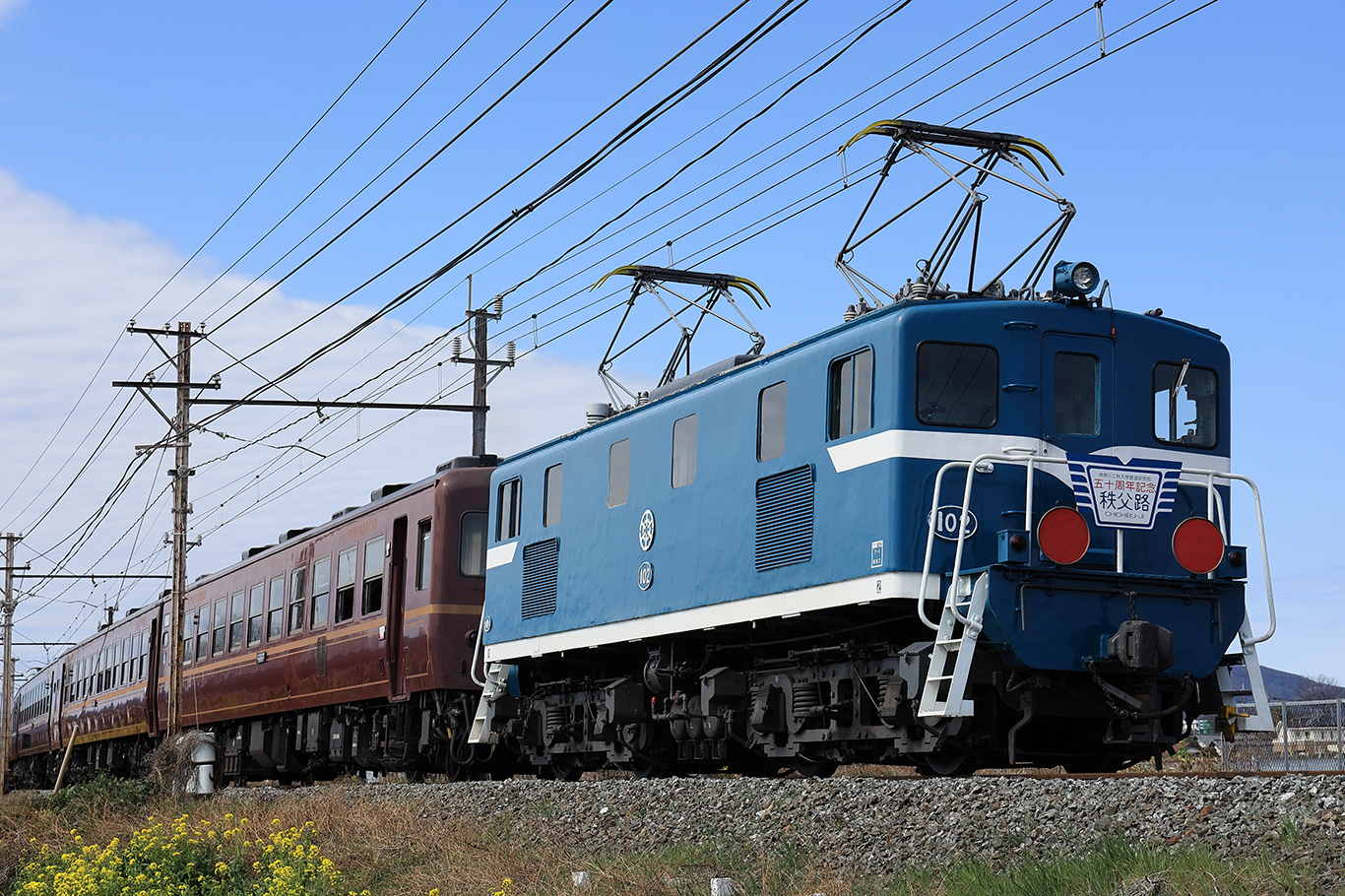 ヘッドマークには「神奈川工科大学鉄道研究部 五十周年記念 秩父路」と書いてありました。なるほど大学の鉄研団臨でしたか。